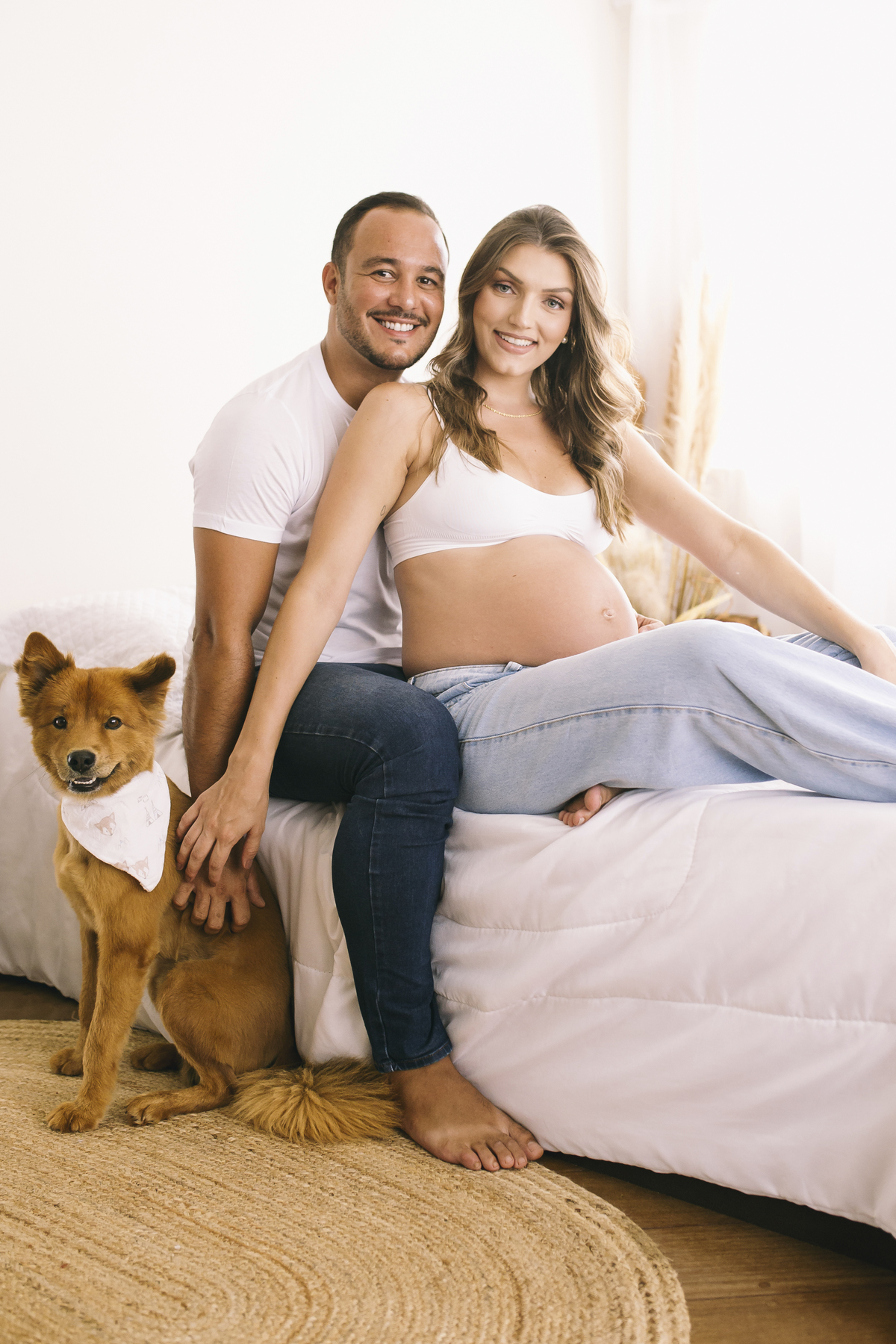 O ensaio foi uma verdadeira celebração da família, que já conta com um integrante peludo e cheio de charme. O irmão de quatro patas, com toda a sua fofura, também fez questão de participar desse momento tão importante, trazendo ainda mais calor e amor ao cenário. Ele estava ali, ao lado dos papais, mostrando que a espera pelo Bernardo é um momento vivido por todos, sem exceção. Cada clique que fiz foi uma tentativa de eternizar a emoção e a felicidade de ver uma nova vida chegando para completar a família.